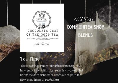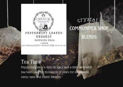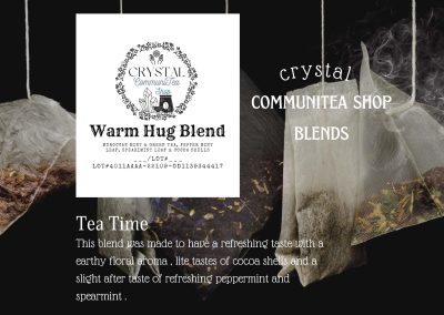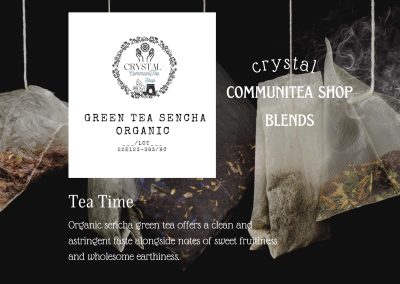 Discover the perfect harmony of premium organic teas and healing energy. At Crystal CommuniTea Shop, we invite you to taste our curated selection of nature’s finest infusions, crafted to bring balance and serenity to your daily ritual.